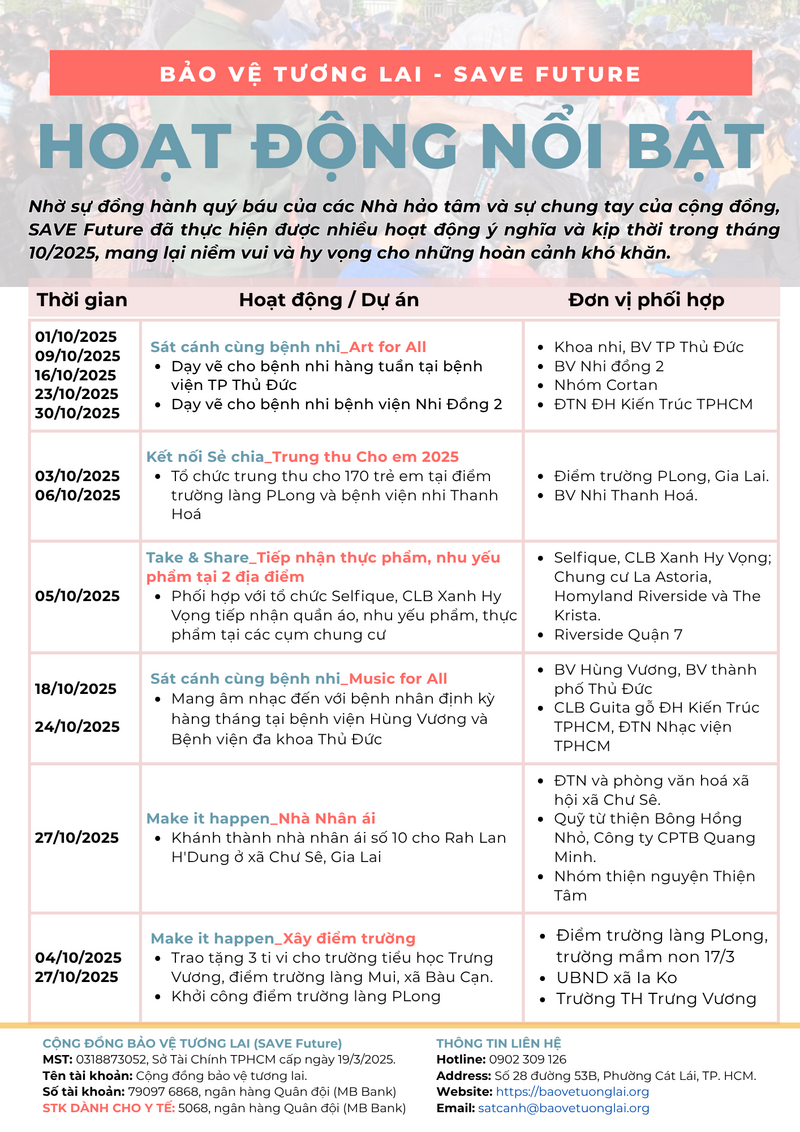 Tổng kết hoạt động và thành quả của SAVE Future trong tháng 10.
