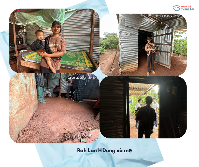 H'Dung mới hơn 1 tuổi, sống cùng ba mẹ trong căn nhà dột nát, nền đất đỏ lầy lội khi mưa xuống. Mái tôn cũ nát khiến căn nhà nóng bức vào ban ngày và dột nát khi trời mưa, khiến cô bé thường xuyên ốm đau. Nhận thấy nguy cơ sập nhà trong mùa mưa bão sắp tới, chúng tôi đã khẩn trương khởi công căn nhà cho H'Dung vào ngày 02/09/2025 dù chưa đủ kinh phí tài trợ. Hành động này xuất phát từ mong muốn bảo vệ một sinh linh nhỏ bé, không thể chờ đợi thêm.