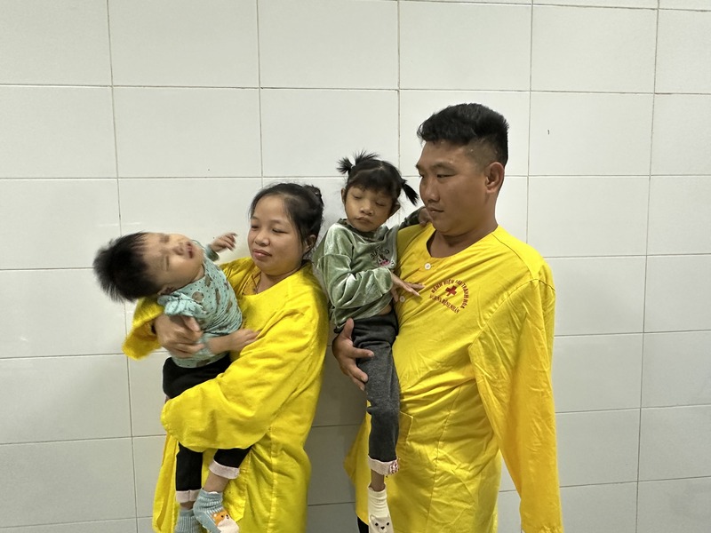 Phạm Thị Bảo An (7 tuổi) & Phạm Thị Minh Anh (3 tuổi): Cả hai chị em đều bị Teo tiểu não, Xơ gan, Bại não.