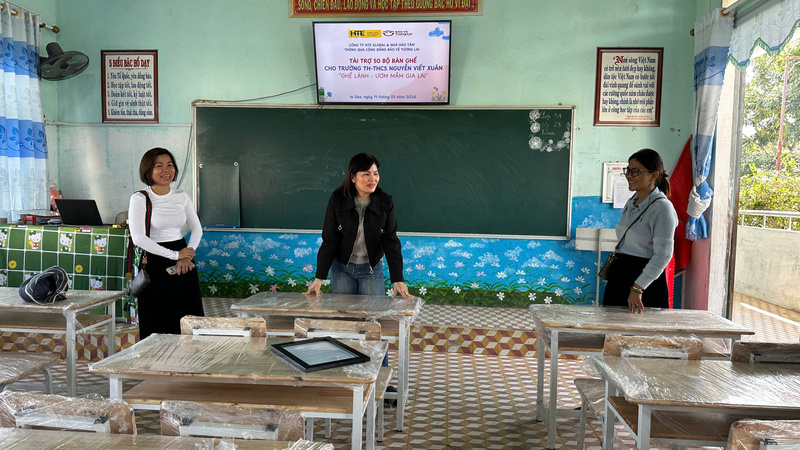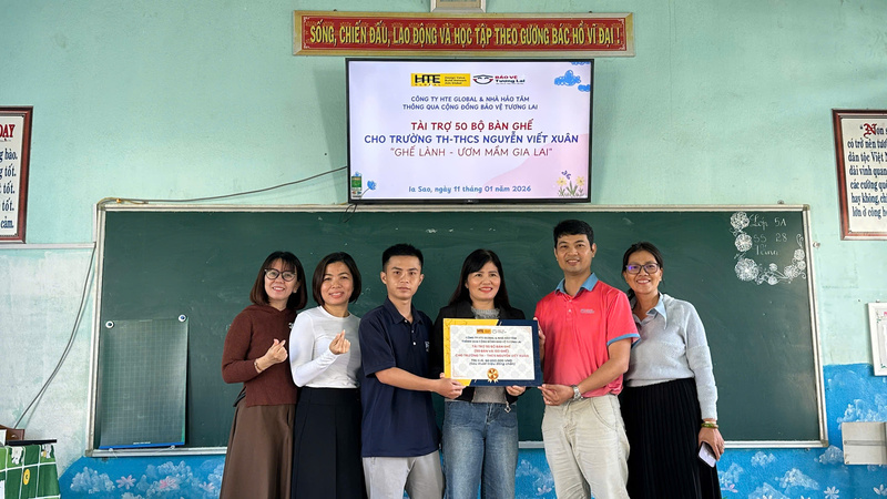 Sáng ngày 11/01/2026, không khí tại Trường TH-THCS Nguyễn Viết Xuân (xã Ia Sao, Gia Lai) trở nên rộn ràng hơn bao giờ hết. Chuyến xe của dự án "Ghế lành - Ươm mầm Gia Lai" do Cộng đồng Bảo vệ Tương lai (SAVE Future) phối hợp cùng HTE Global thực hiện đã chính thức cập bến, mang theo 50 bộ bàn ghế mới đạt chuẩn để thay thế cho những cơ sở vật chất đã xuống cấp trầm trọng sau bão lũ.