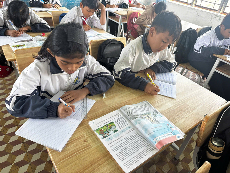 Năm nào cũng vậy, nước lũ rút đi để lại bùn đất và sự hư hại nặng nề về cơ sở vật chất. Những bộ bàn ghế vốn đã cũ kỹ, qua nhiều lần ngâm nước lại càng trở nên ọp ẹp, chắp vá. Thế nhưng, vượt lên trên những khó khăn ấy là sự bền bỉ đáng kinh ngạc của thầy và trò nơi đây. Các em học sinh vẫn đội mưa, lội bùn đến lớp, viết tiếp ước mơ con chữ giữa đại ngàn.