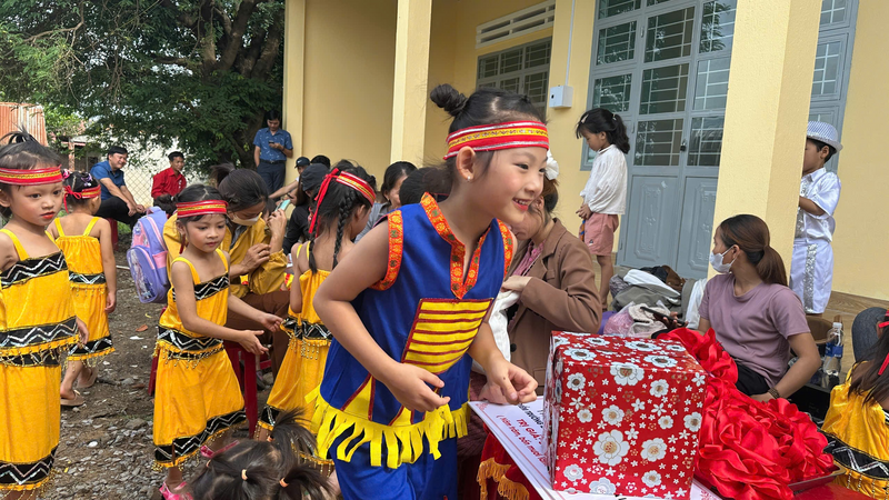 Niềm vui của trẻ em tại điểm trường làng Dek trong lễ khánh thành