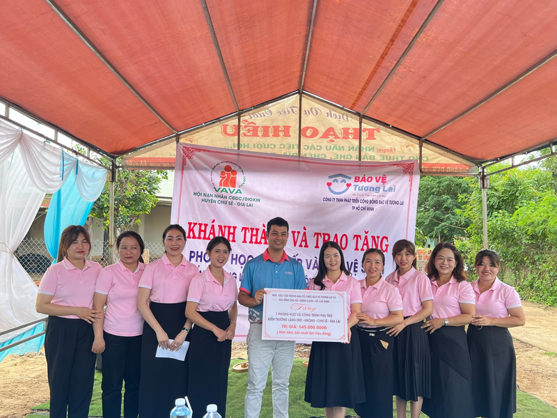 Trong buổi lễ, các đại diện từ SAVE Future, Hội Nạn nhân chất độc da cam/dioxin huyện Chư Sê & xã H’Bông, UBND xã H’Bông, và Hội Chữ Thập Đỏ huyện Chư Sê đã cùng nhau cắt băng khánh thành và trao bảng tài trợ. Hội Chữ Thập Đỏ cũng trao tặng thêm bộ dụng cụ nấu ăn, hỗ trợ nhà trường trong sinh hoạt hàng ngày.