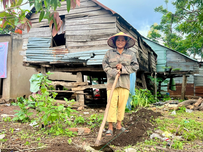 Nụ cười hạnh phúc của mẹ Kpa H'Diệu Yến khi đặt móng và khởi công