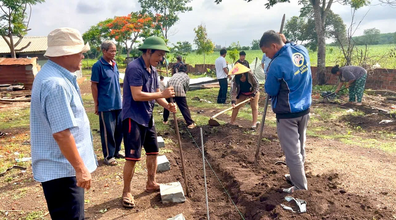Đông đảo hàng xóm đã đến chia vui và góp sức để đào móng và tham dự lễ khởi công