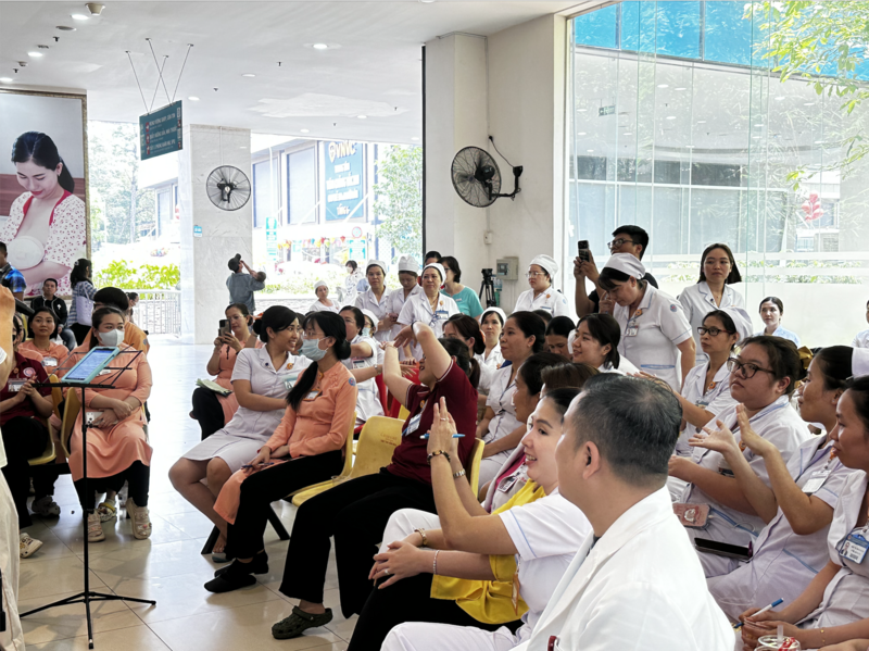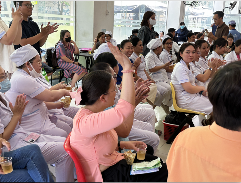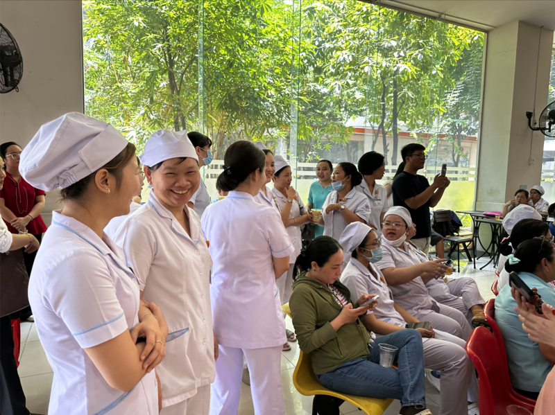 Tạm gác lại những bộn bề của ca trực, sự mệt mỏi của những đợt điều trị kéo dài, các y bác sĩ và quý cô chú bệnh nhân đã cùng nhau hòa nhịp vào những bài ca đi cùng năm tháng.