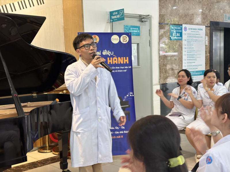 Tạm gác lại chiếc áo blouse trắng và những áp lực chuyên môn thường nhật, các anh chị đã bước lên sân khấu với nụ cười rạng rỡ, cầm mic và hòa giọng đầy say mê cùng Giai điệu đồng hành. Khoảnh khắc ấy, ranh giới giữa người chữa bệnh và người bệnh dường như tan biến. Tại sảnh bệnh viện, chỉ còn lại sự đồng điệu của những trái tim yêu thương, cùng hướng về một niềm tin vào cuộc sống tươi đẹp.