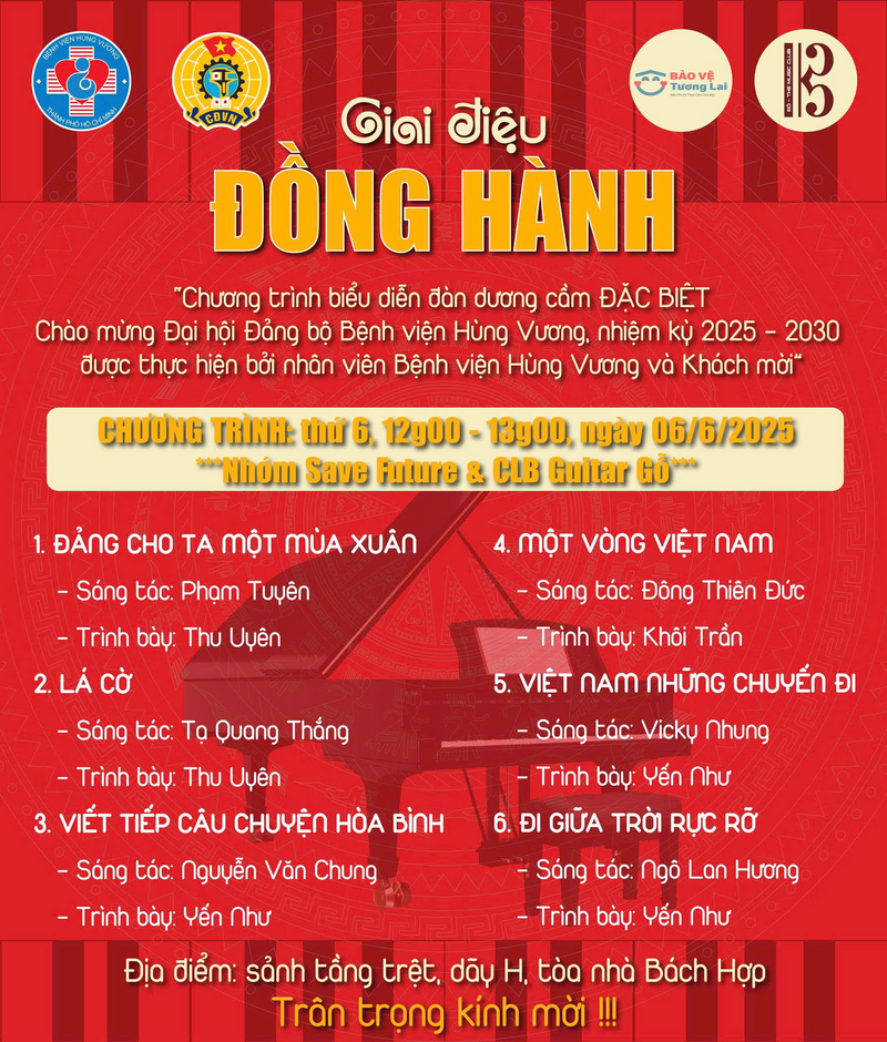 Với sự chung tay của ba đơn vị: SAVE Future, Công đoàn Bệnh viện Hùng Vương, và CLB Guitar Gỗ - trường Đại học Kiến trúc TP.HCM, chương trình đã trở thành một không gian đặc biệt, xóa nhòa khoảng cách giữa bệnh nhân, người nhà và đội ngũ y tế.