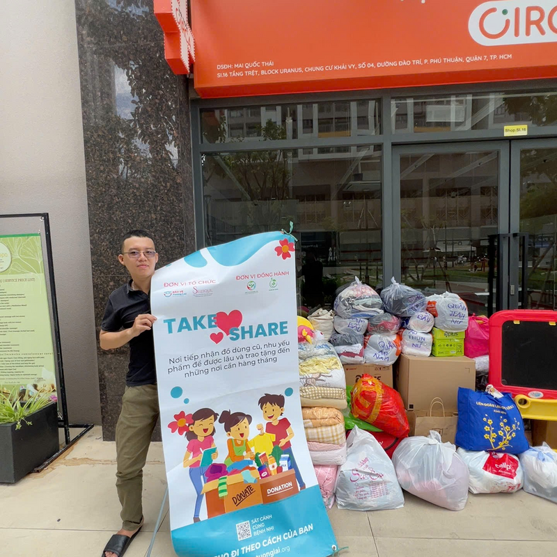 TP. Hồ Chí Minh, ngày 13/07/2025 – Sáng nay, dự án Take & Share của SAVE Future đã lan tỏa không khí sẻ chia ấm áp tại hai cụm chung cư lớn: Homyland Riverside (TP. Thủ Đức) và Riverside (Quận 7). Chương trình đã thành công tốt đẹp khi nhận được sự đồng hành của 4 thành viên SAVE Future, 6 tình nguyện viên, và đặc biệt là 251 người chia sẻ - những "givers" tuyệt vời đã biến những món đồ cũ thành những món quà đầy ý nghĩa.
